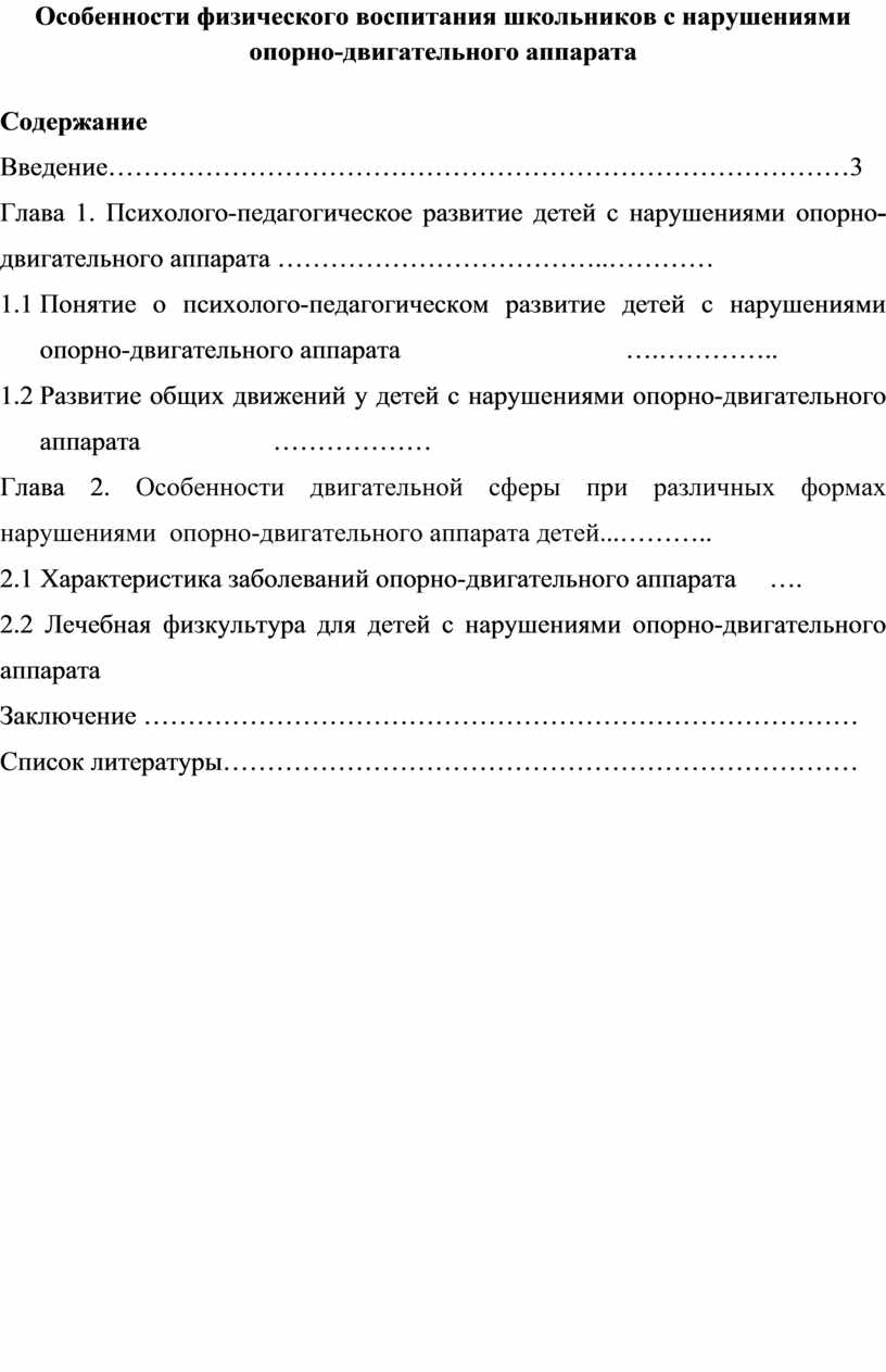 Глава 1. Психолого-педагогическое развитие детей с нарушениями опорно-двигательного аппарата ………………………………..…………