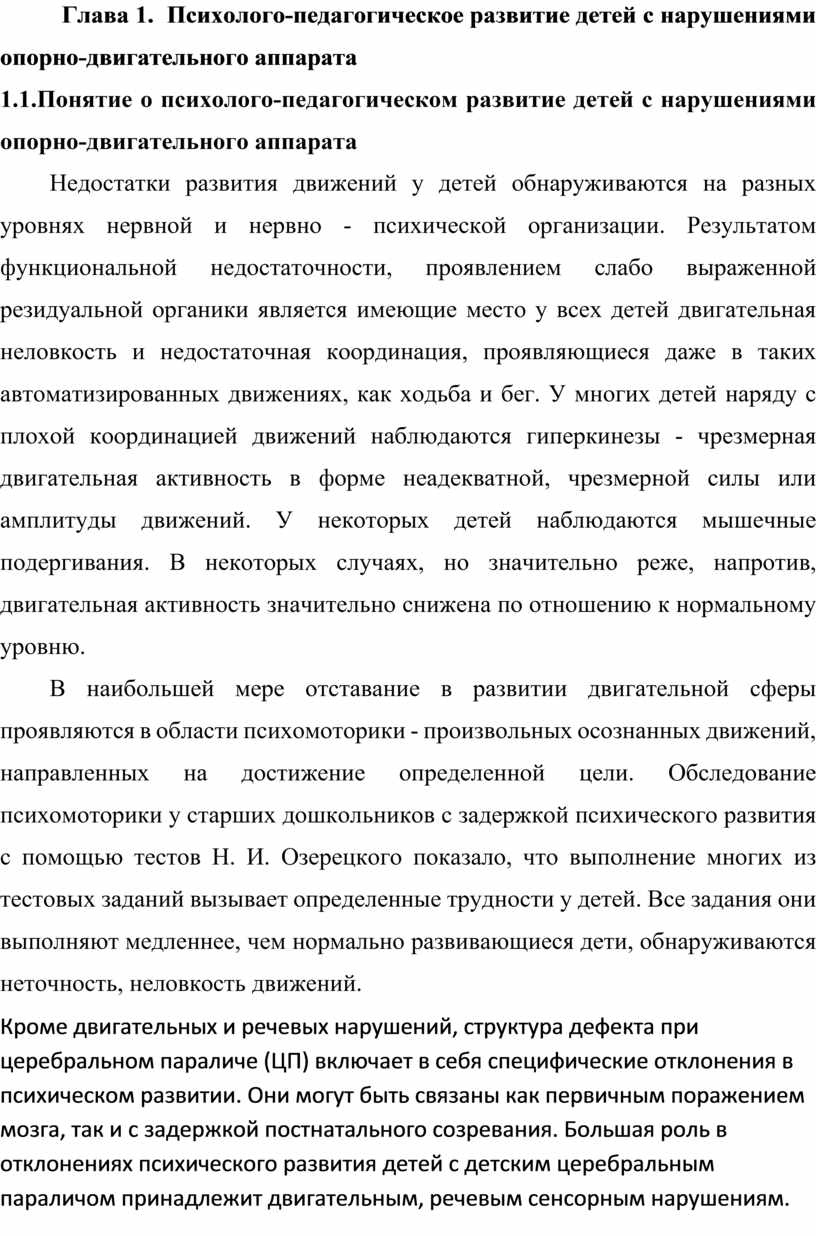 Глава 1. Психолого-педагогическое развитие детей с нарушениями опорно-двигательного аппарата