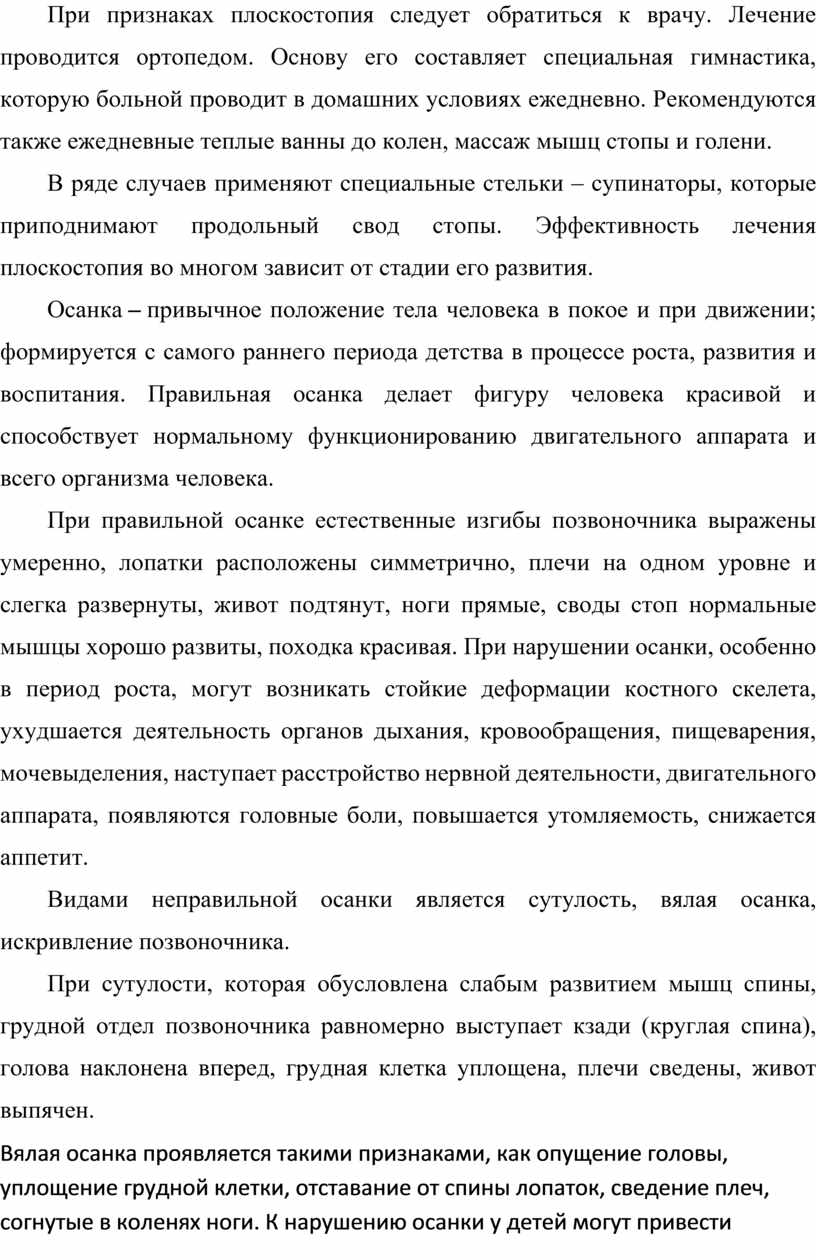 Нарушения осанки и стопы требуют большого внимания. Если с раннего детства не выявить эти заболевания и не исключить их, то в старшем возрасте исправить эти нарушения будет гораздо сложнее. Отсюда следует, что нарушения опорно-двигательного аппарата нужно исправлять с раннего детства, и в дальнейшем корректировать их.