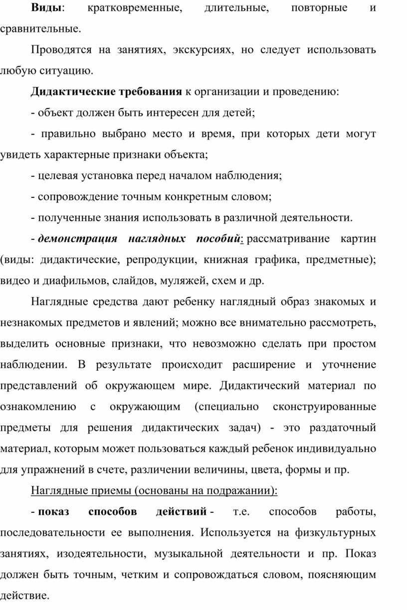 - показ способов действий - т.е. способов работы, последовательности ее выполнения. Используется на физкультурных занятиях, изодеятельности, музыкальной деятельности и пр. Показ должен быть точным, четким и сопровождаться словом, поясняющим действие.