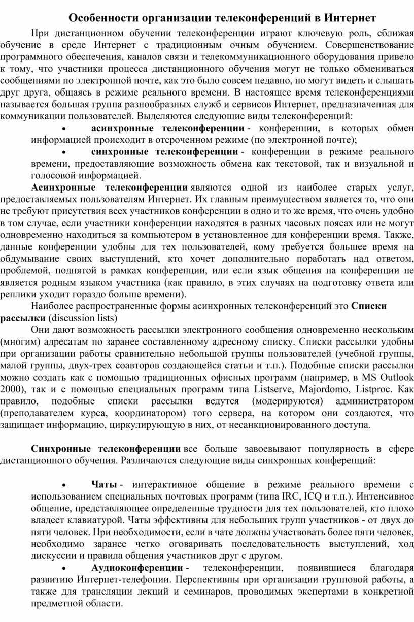 Особенности организации телеконференций в Интернет