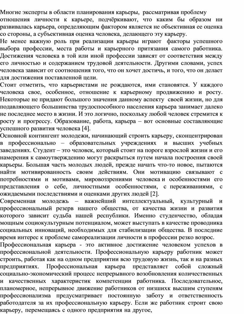 Тематика карьерного роста в нашей республике в настоящее время является особенно актуальной. Она привлекает внимание не только специалистов в области управления персоналом и сотрудников предприятия, но и молодых специалистов обучающихся на последних курсах учебных заведений.