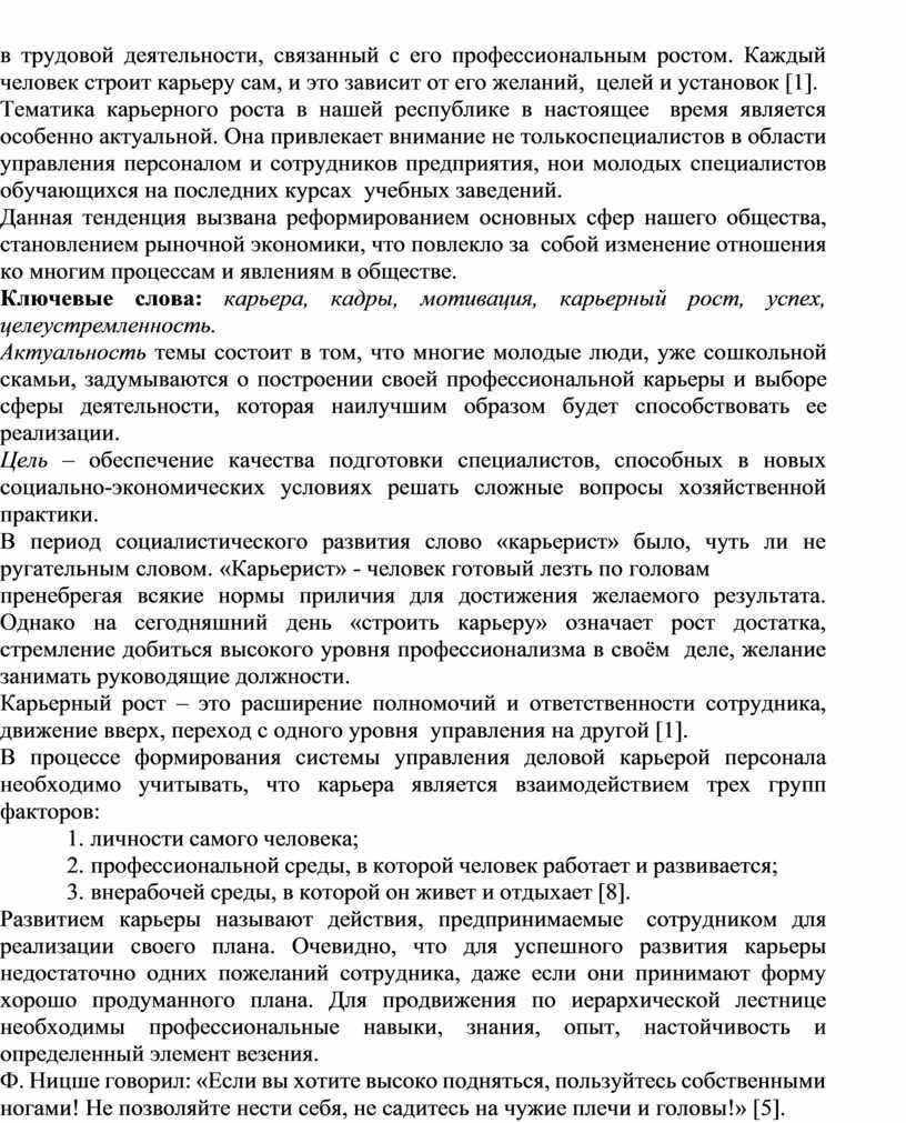 Ключевые слова: карьера, кадры, мотивация, карьерный рост, успех, целеустремленность.