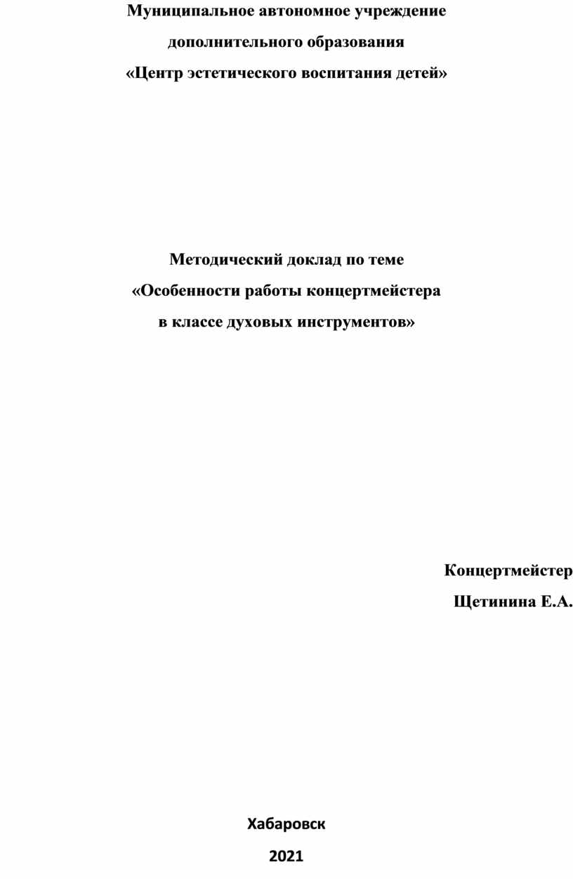 Рассмотрим особенности работы концертмейстера в центре эстетического воспитания детей, в классе духовых инструментов.