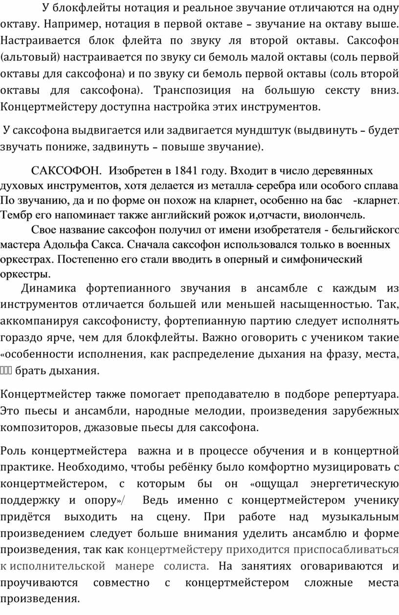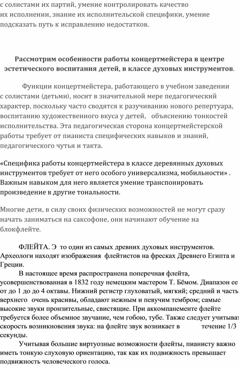 Работа концертмейстера в классе духовых инструментов