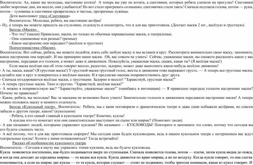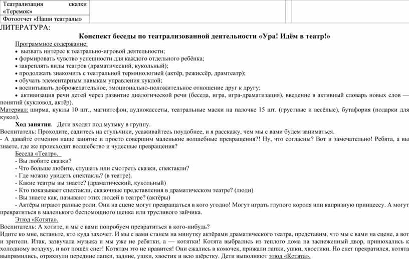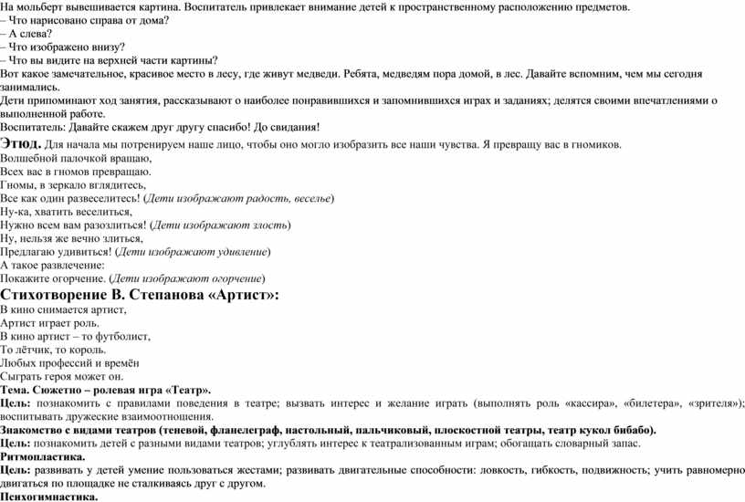 Цель: познакомить детей с разными видами театров; углублять интерес к театрализованным играм; обогащать словарный запас.