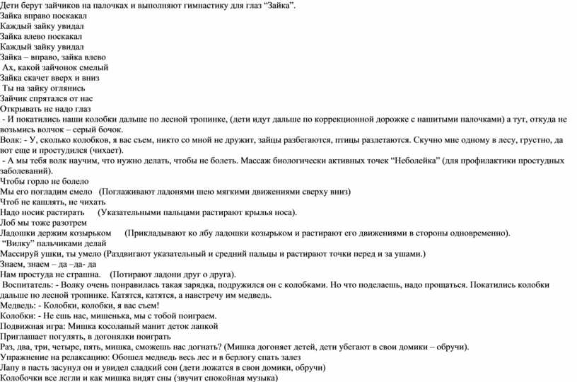 Закрепить у детей знания о содержании русской народной сказки “Колобок”. Продолжать обучать приемам массажа биологически – активных точек на лице, руках, ногах. Воспитывать храбрость, уверенность в своих силах. |