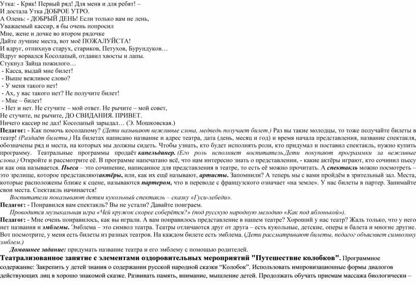 Цель: познакомить с правилами поведения в театре; вызвать интерес и желание играть (выполнять роль «кассира», «билетера», «зрителя»); воспитывать дружеские взаимоотношения.