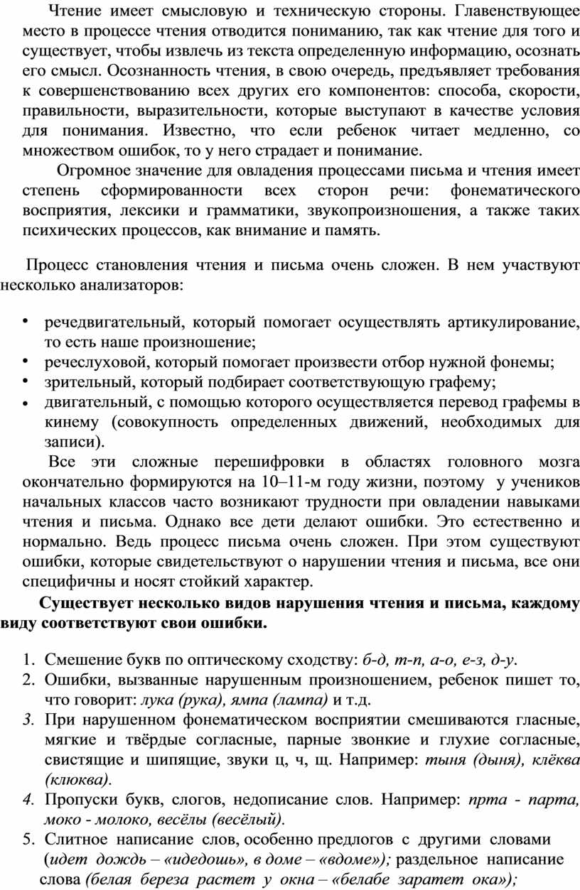 Процесс становления чтения и письма очень сложен. В нем участвуют несколько анализаторов: