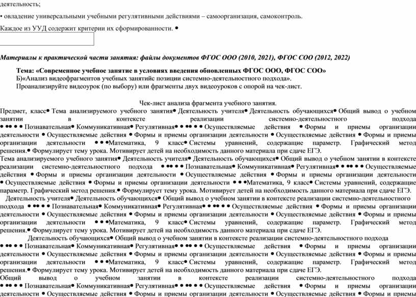 Б)«Анализ видеофрагментов учебных занятийс позиции системно-деятельностного подхода».