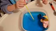 В миску наливается вода, можно окрасить в синий цвет. «Запускаем» кораблики и через коктейльную трубочку «создаем» бурю на море. Глубокий вдох через нос и долгий глубокий выдох через трубочку на воду. Обязательно ребенку рассказать, что вода окрашена и пить ее очень опасно для организма.
