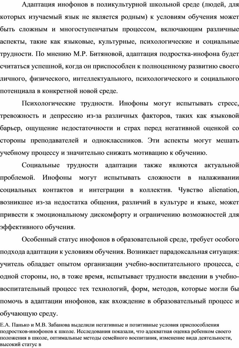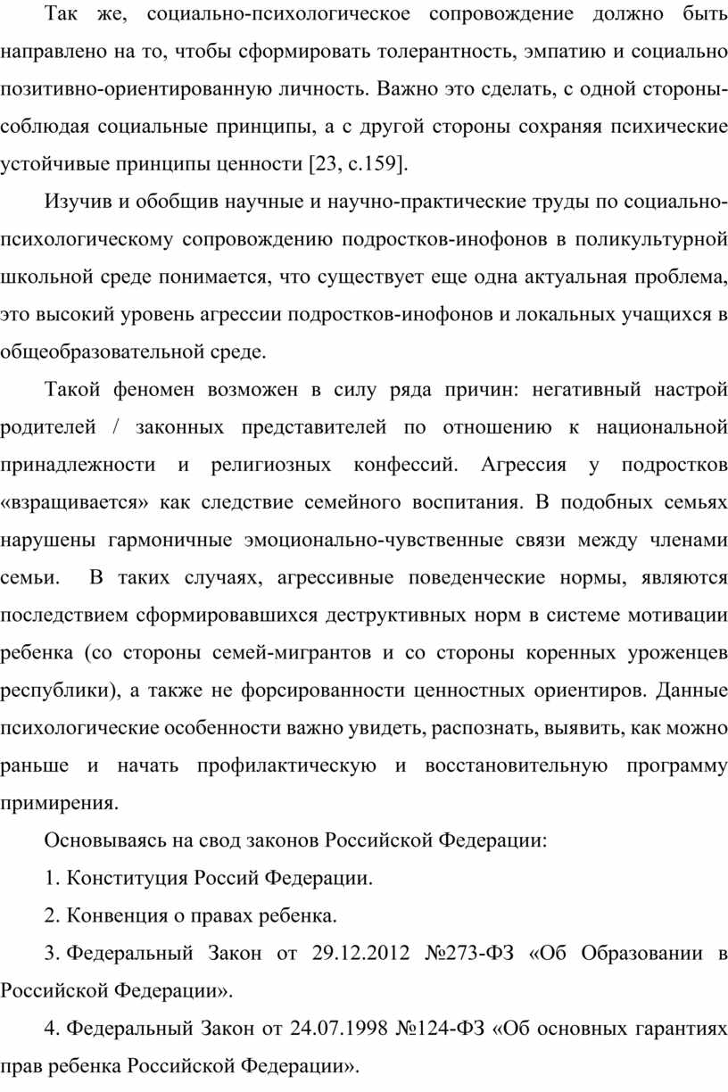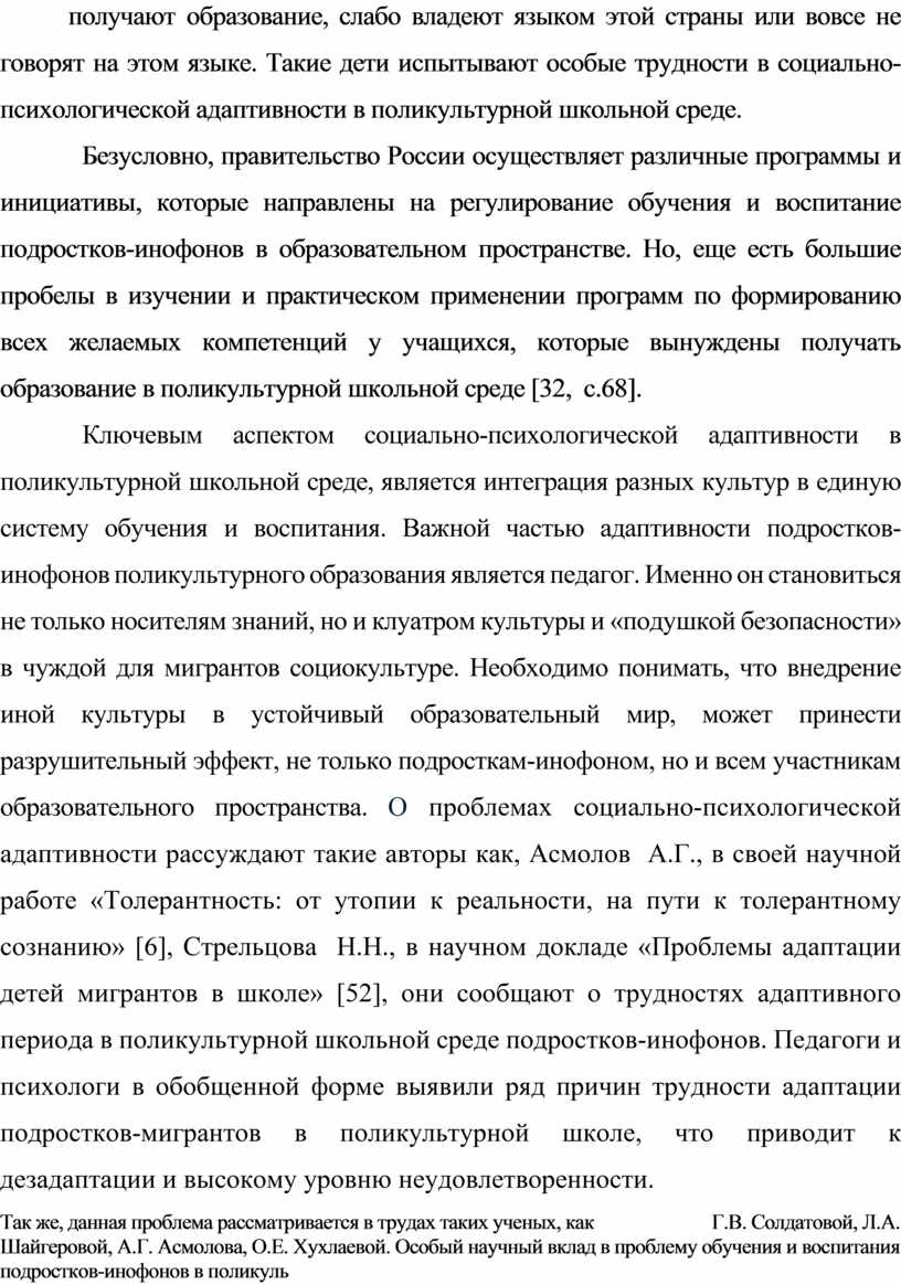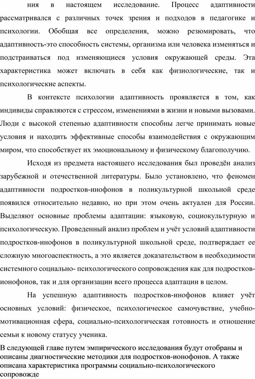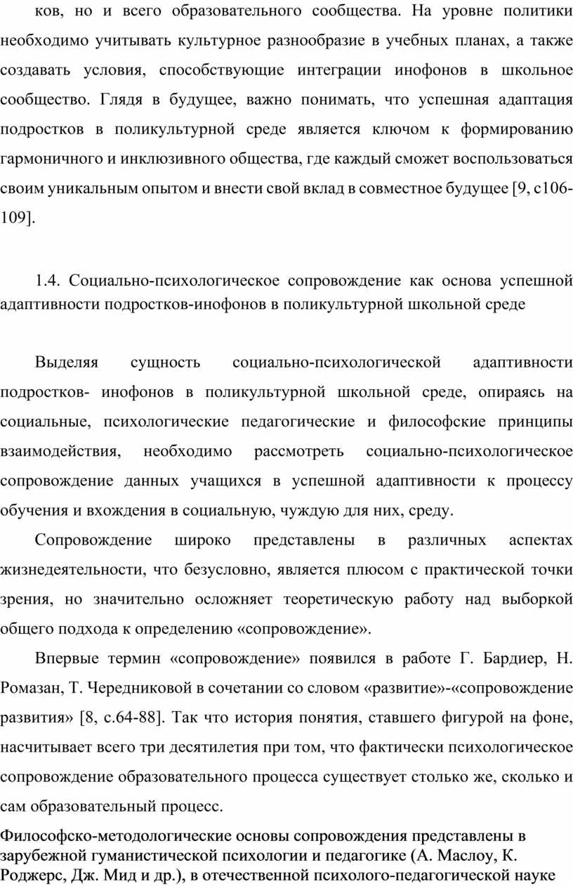 1. Теоретико-методологический анализ литературных источников отечественных и зарубежных авторов по исследованию особенности социально- психологической адаптивности подростков-инофонов в поликультурной школе