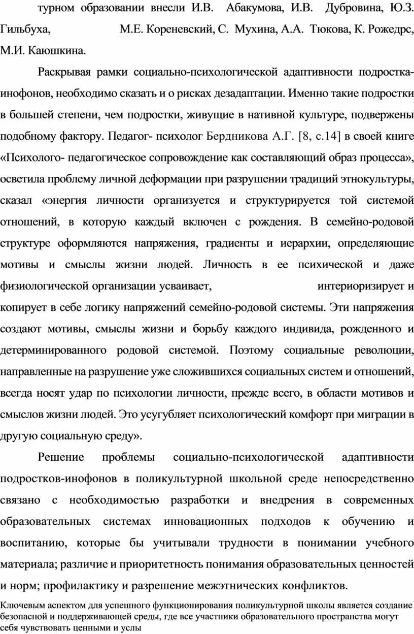 1.4 Социально-психологическое сопровождение как основа успешной адаптивности подростков-инофонов в поликультурной школьной среде 37
