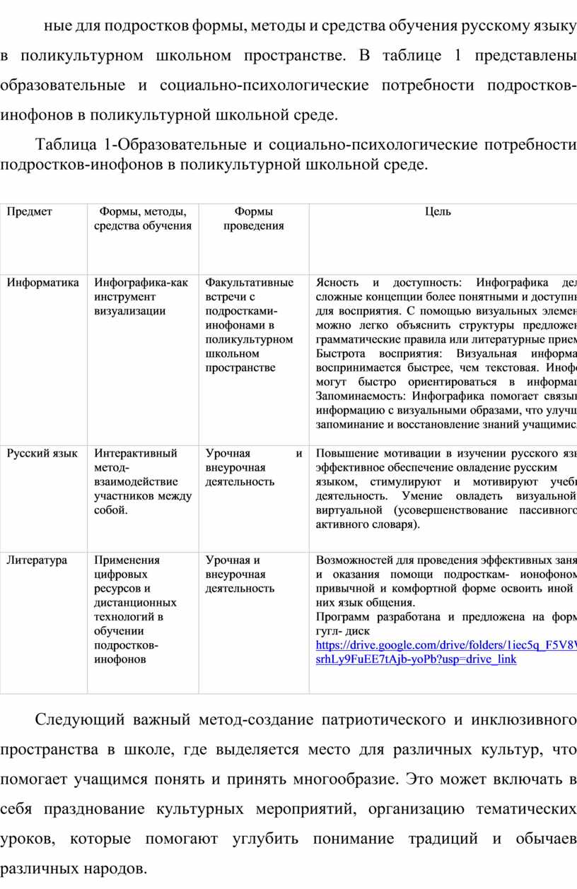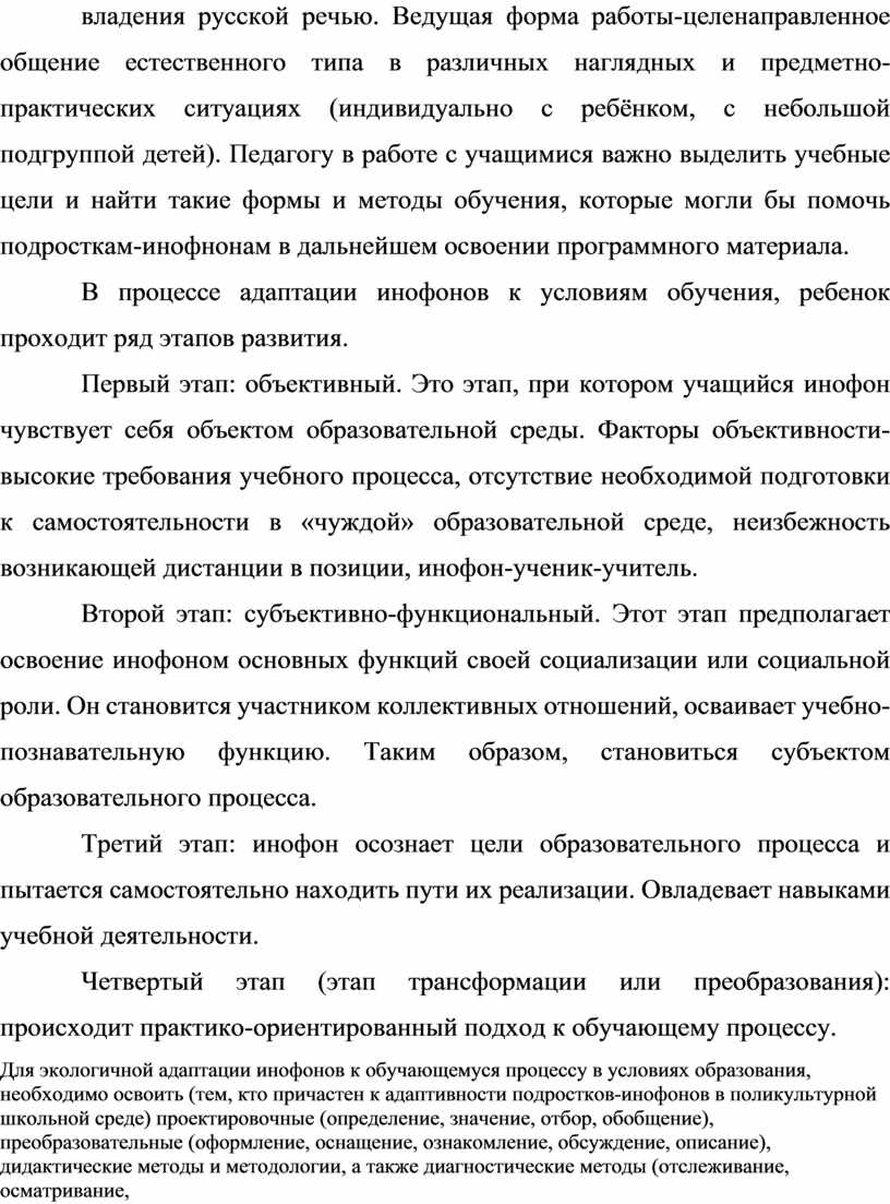 1.3 Формы и методы организации социально-психологической адаптивности подростков-инофонов в поликультурной школьной среде 31