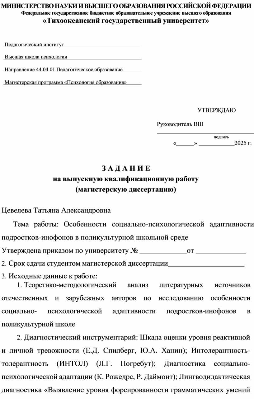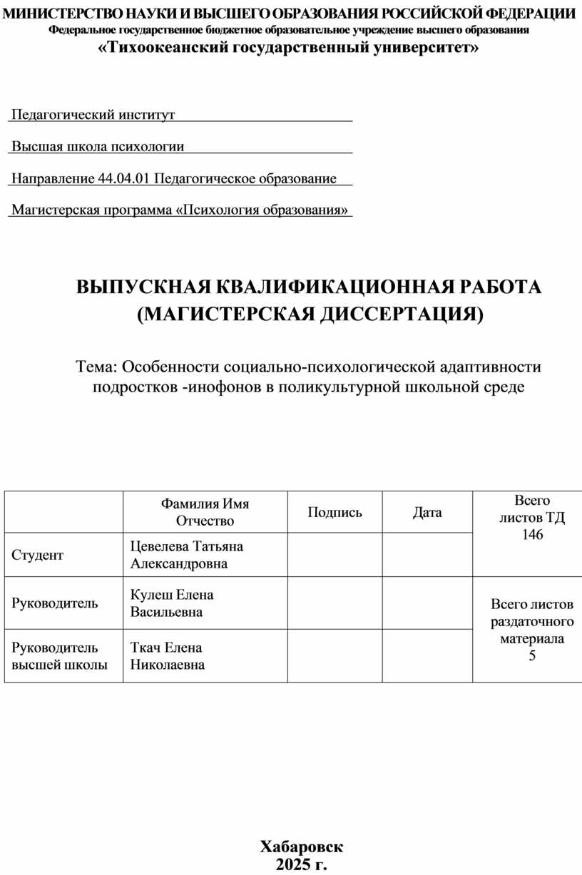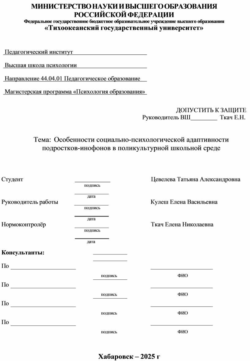 Федеральное государственное бюджетное образовательное учреждение высшего образования «Тихоокеанский государственный университет» |