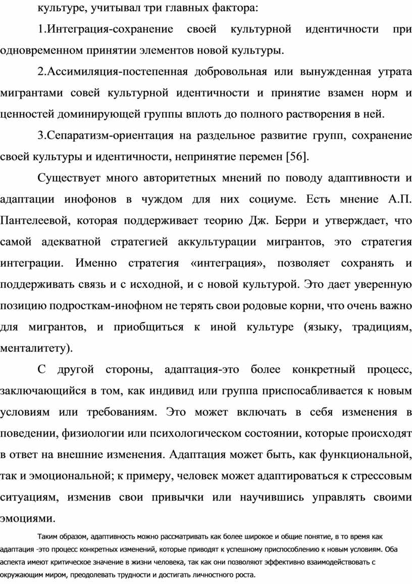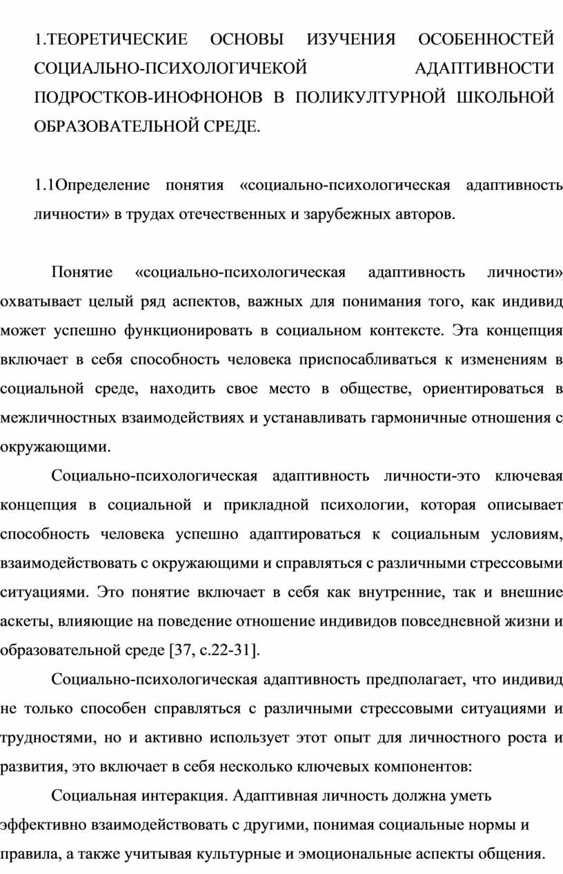 1. Теоретическое обоснование проблемы особенности социально- психологической адаптивности подростков-инофонов в поликультурной школьной среде.