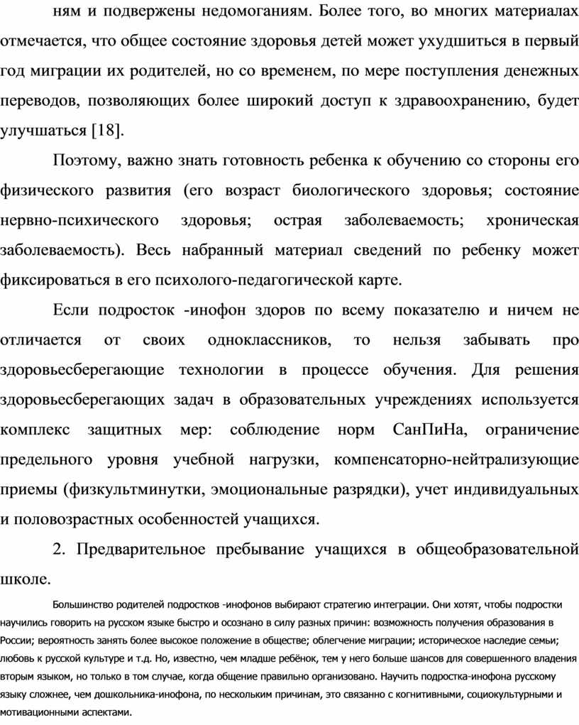 1.2 Характеристика и особенности адаптивности инофонов к условиям обучения к школьной образовательной среде: трудности адаптации 21