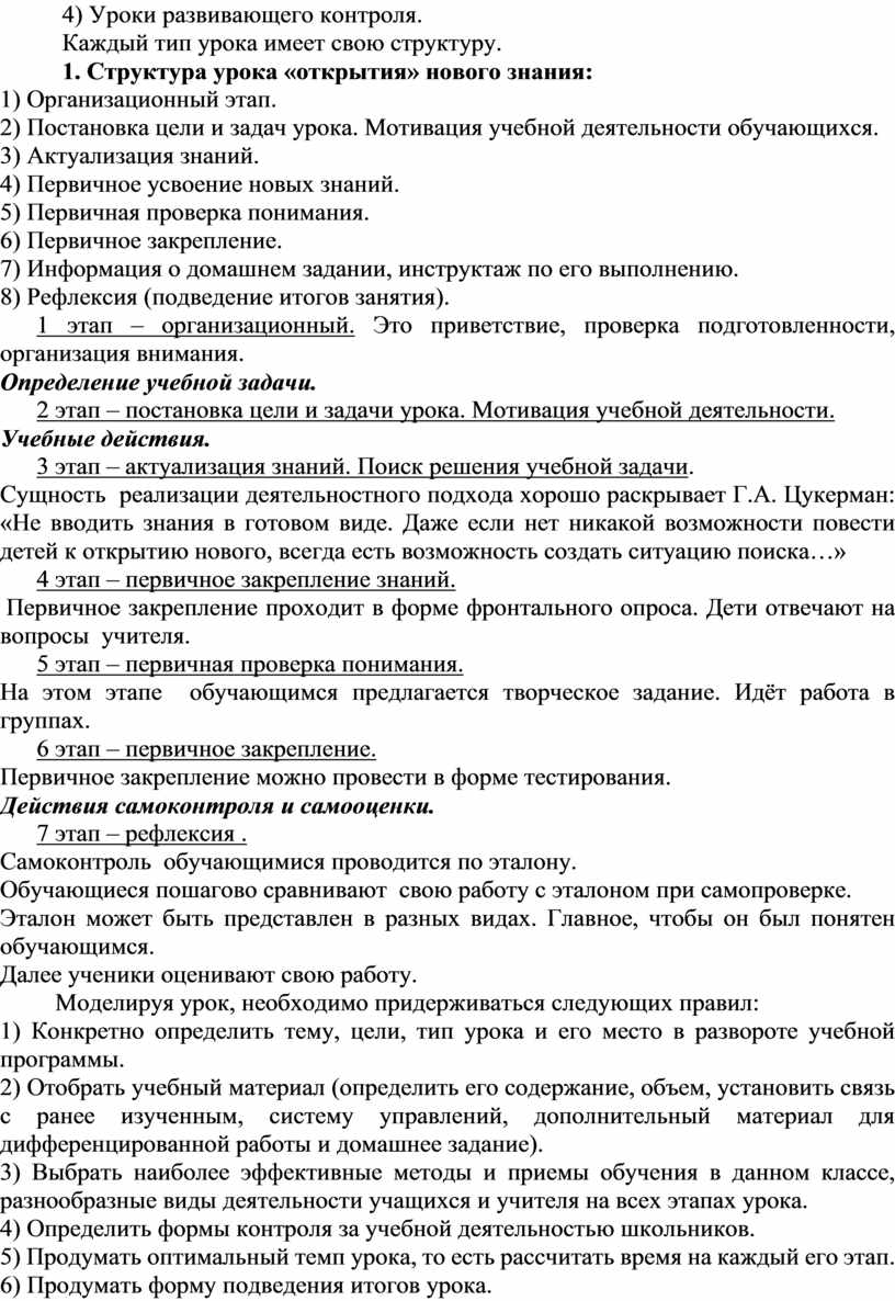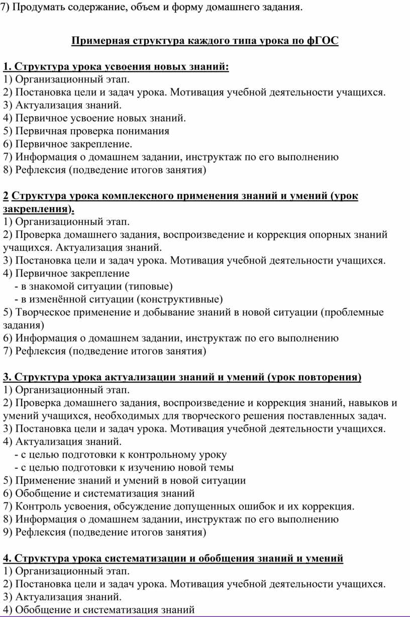 2 Структура урока комплексного применения знаний и умений (урок закрепления).