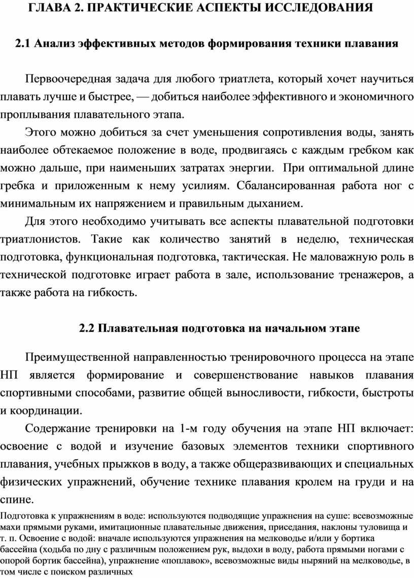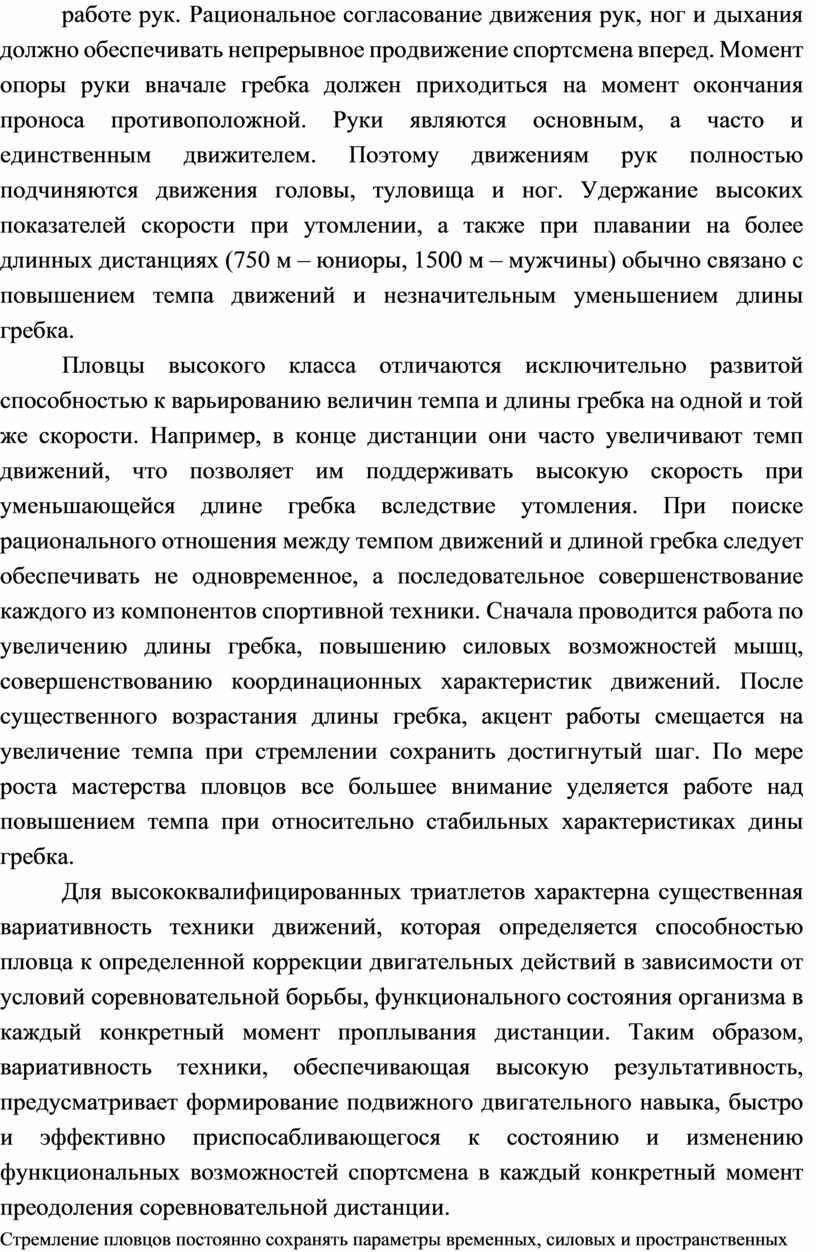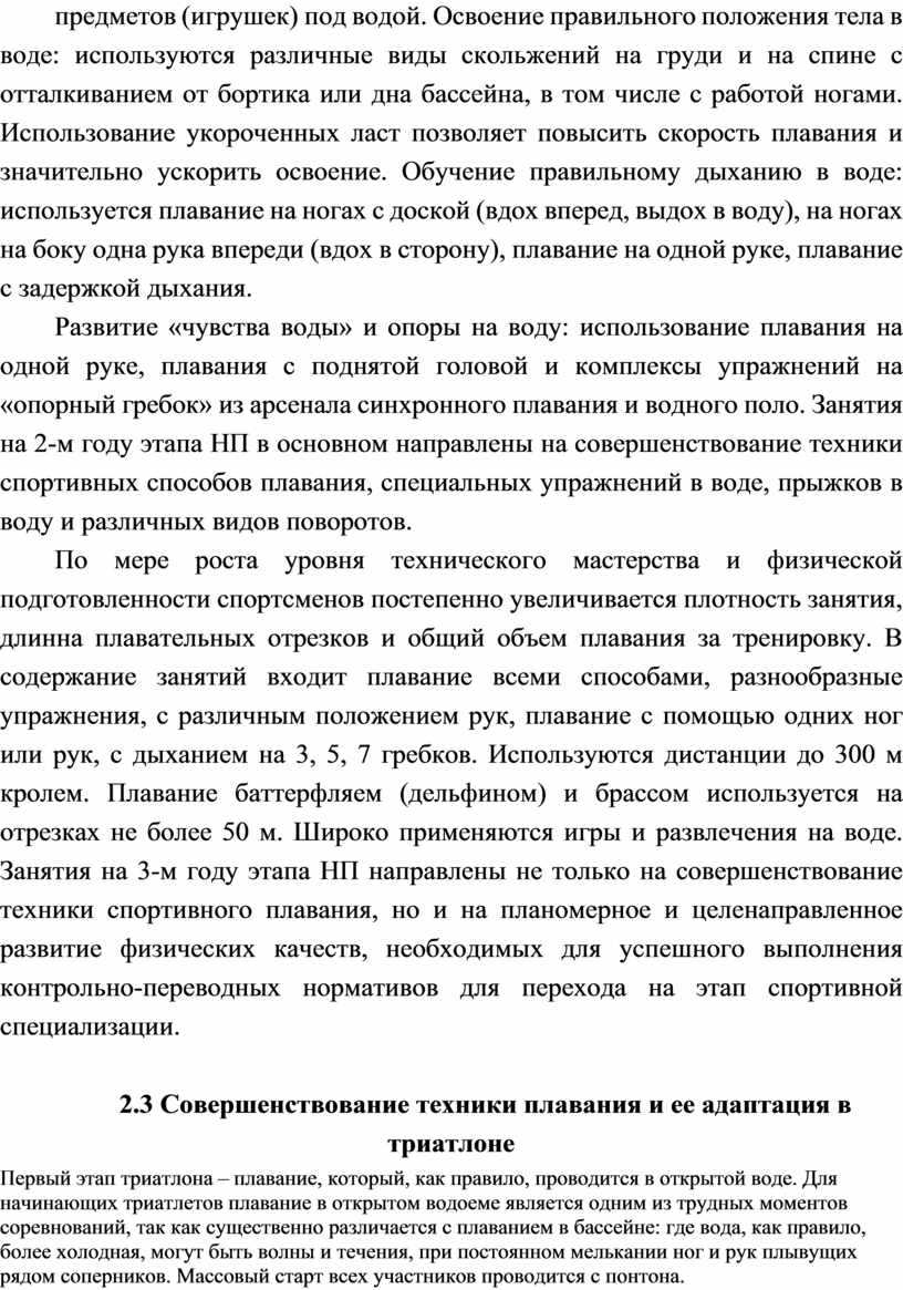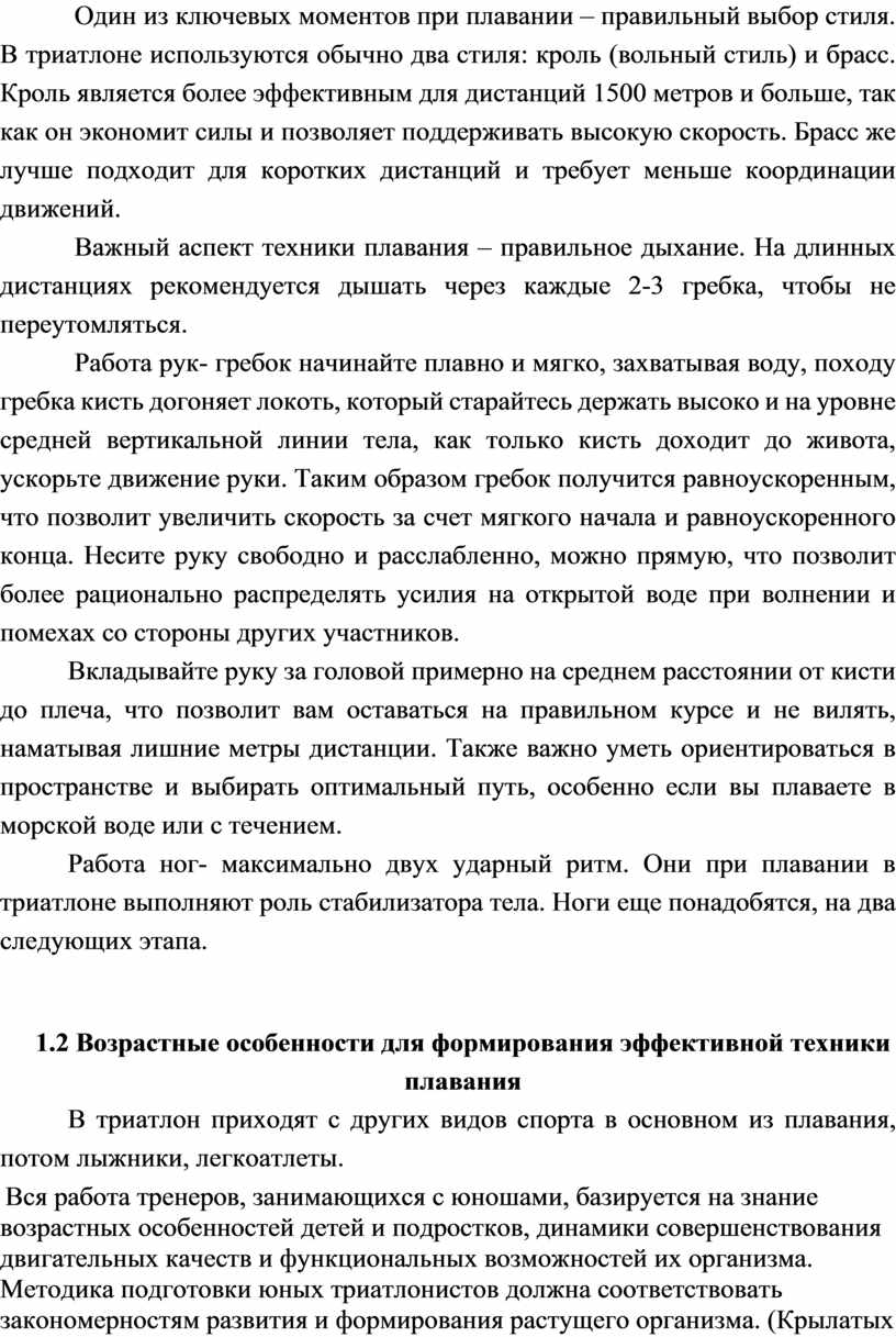 ТЕХНИКИ ПЛАВАНИЯ В ПОДГОТОВКЕ ТРИАТЛОНИСТОВ