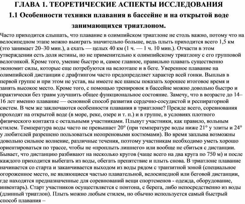 плавания в бассейне и на открытой воде занимающихся триатлоном.