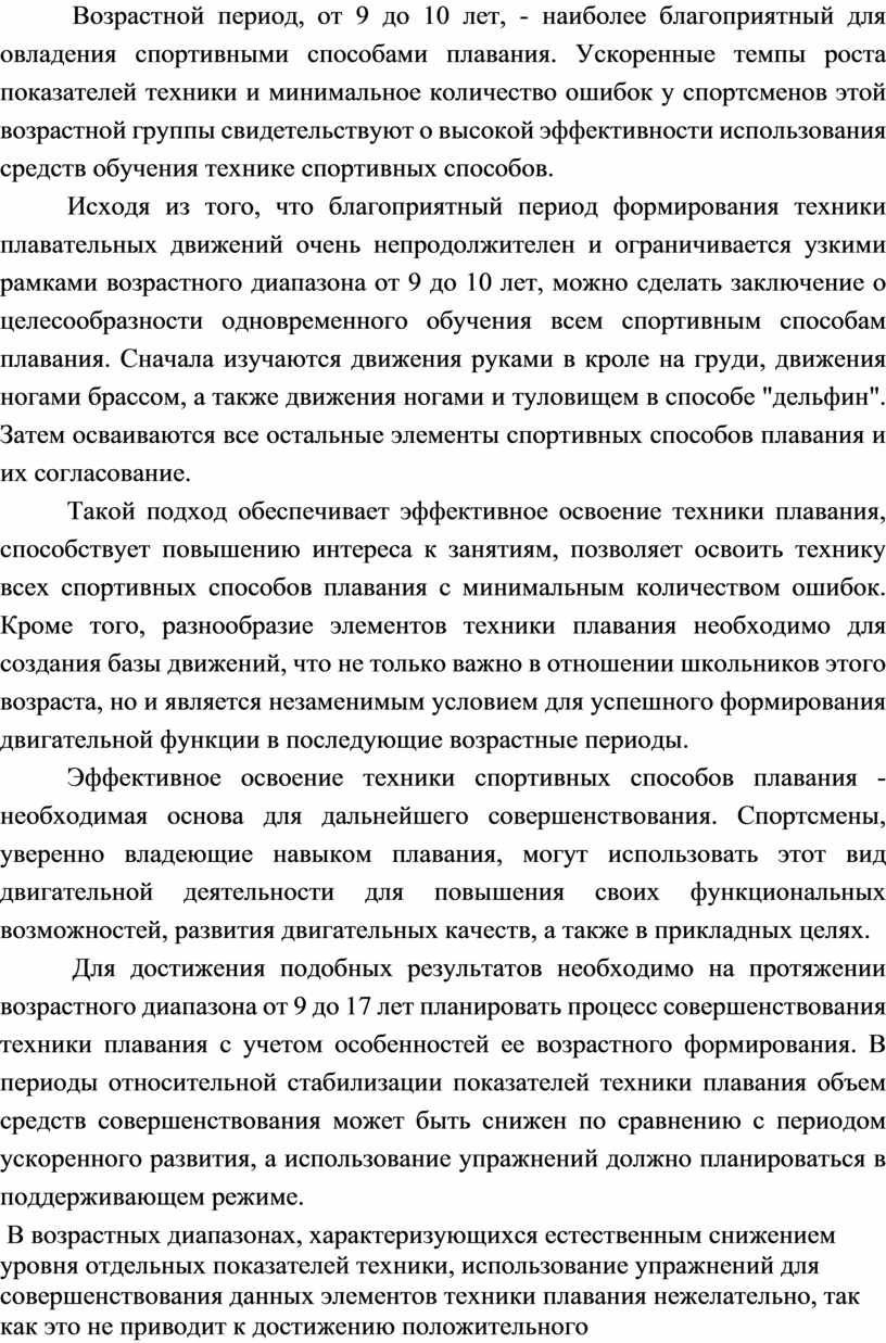 что в возрасте до 14–16 лет именно плавание — основной способ развития