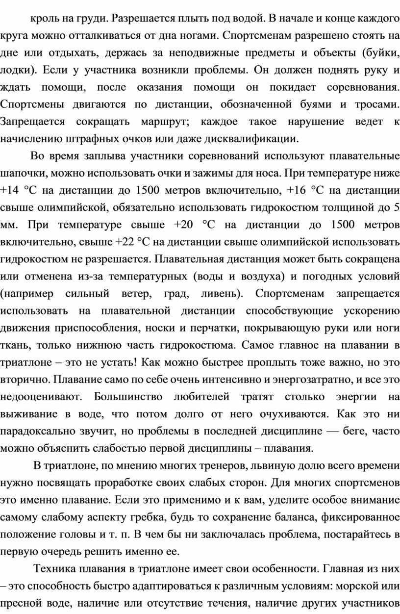 (длинный триатлон). Плыть можно любым стилем, но обычно используется самый