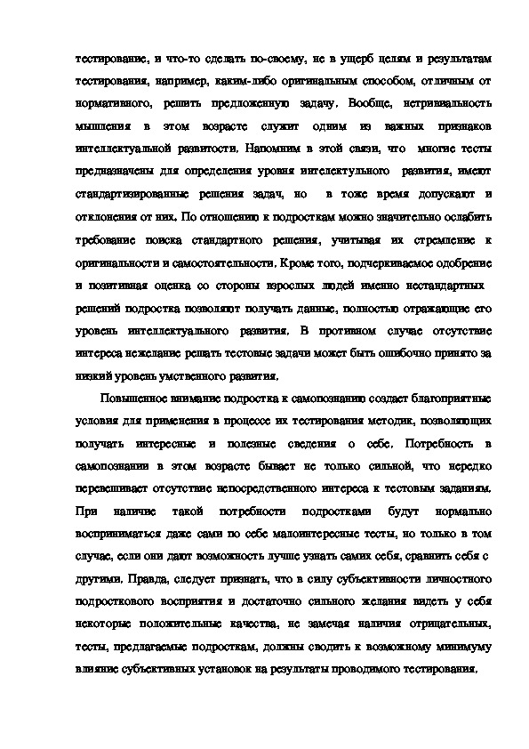 тесты, предлагаемые подросткам, должны сводить к возможному минимуму