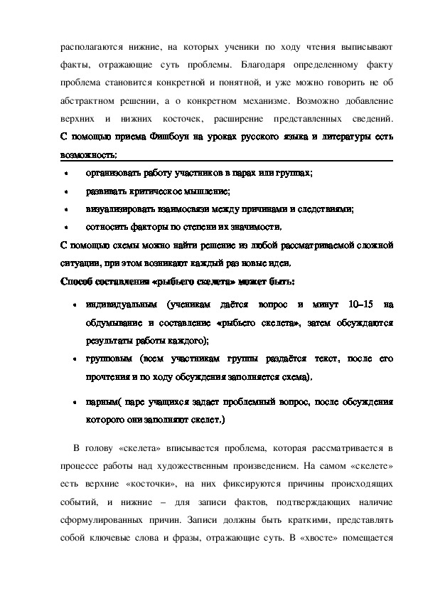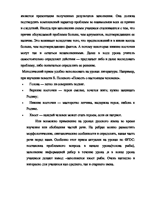 продуктивным – прием «Фишбоун». Этот прием оправдывает себя. Поскольку