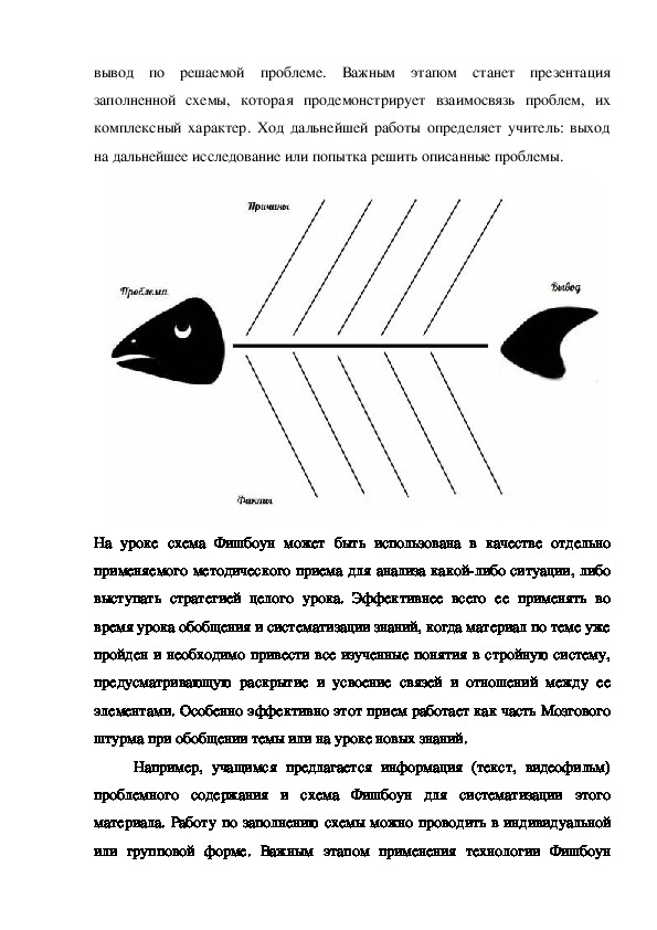 На уроке схема Фишбоун может быть использована в качестве отдельно