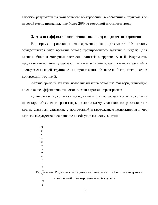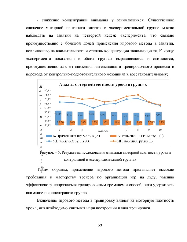 игровому методу уделялось 5060% от моторной плотности занятия, в группе Б