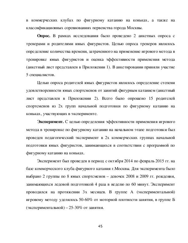 фигурным катанием. Также был проведен опрос тренеров для оценки параметров