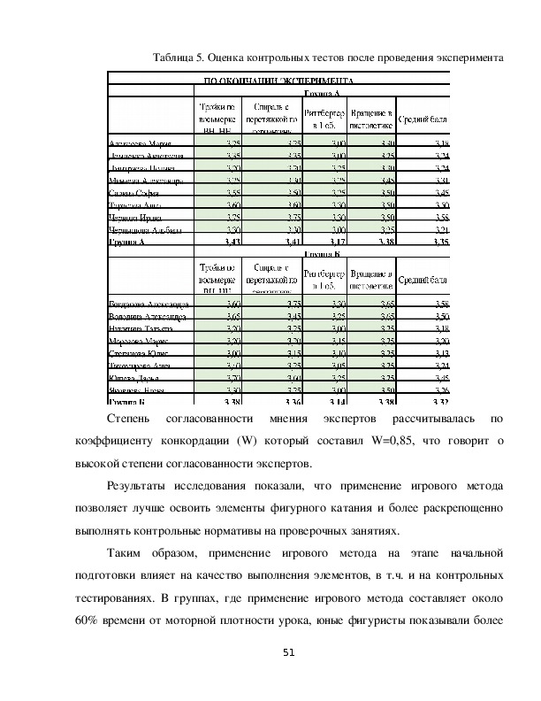 игрового метода в тренировке юных фигуристов у 5 разных тренеров.