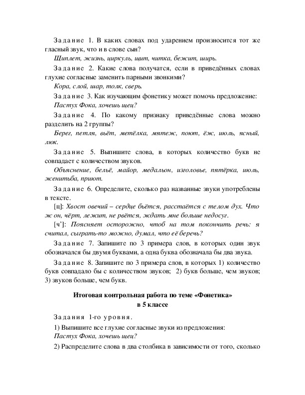 З а д а н и е 6. Определите, сколько раз названные звуки употреблены