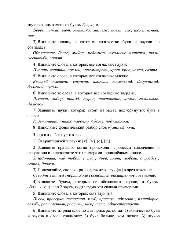 и звуков в слове совпадает; 2) букв больше, чем звуков; 3) звуковбольше, чем букв.