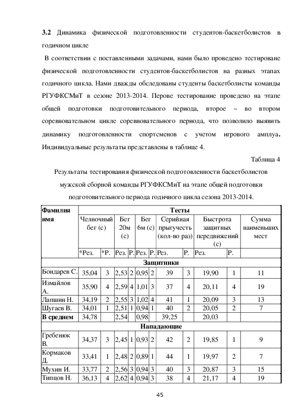 3.2. Динамика физической подготовленности студентовбаскетболистов
