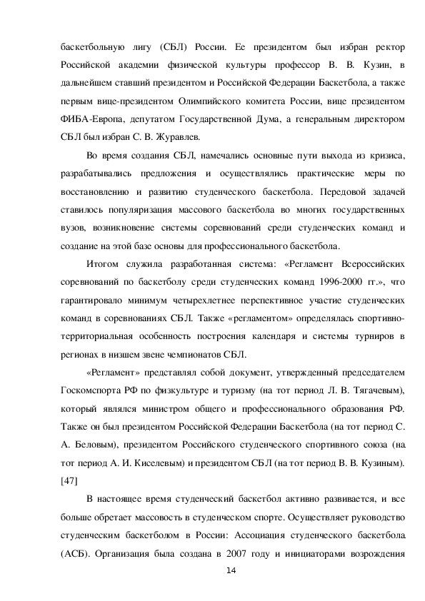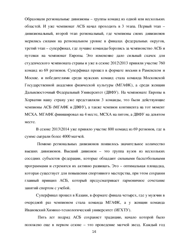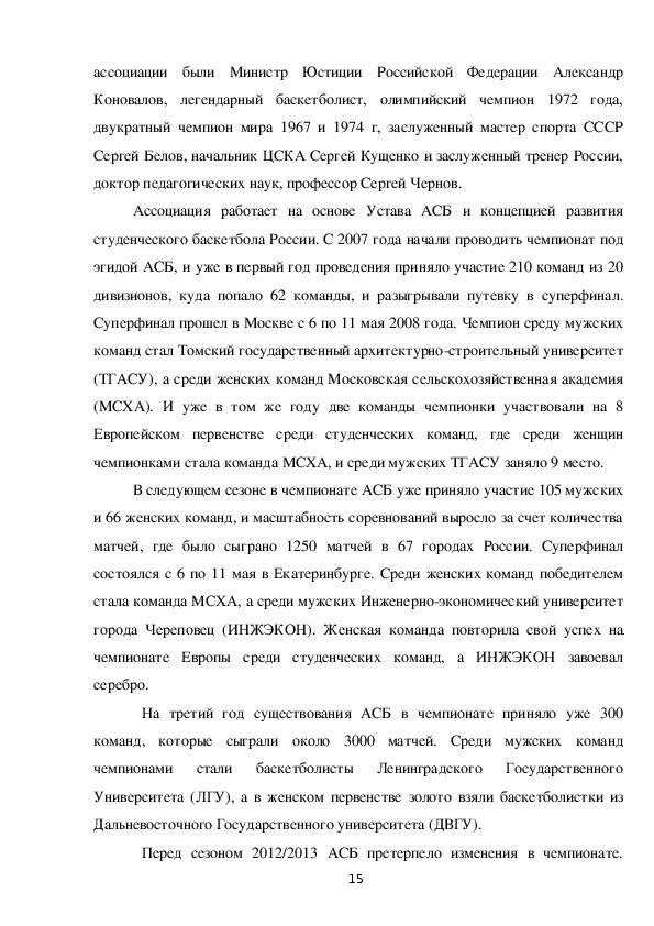 студенческого баскетбола в России, разработанной в АСБ (39), а также в