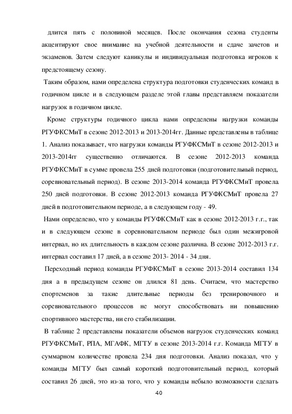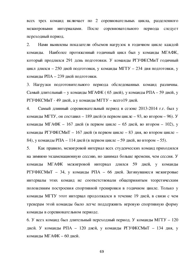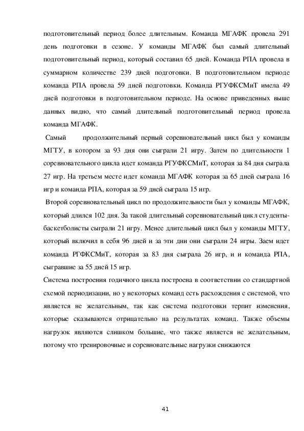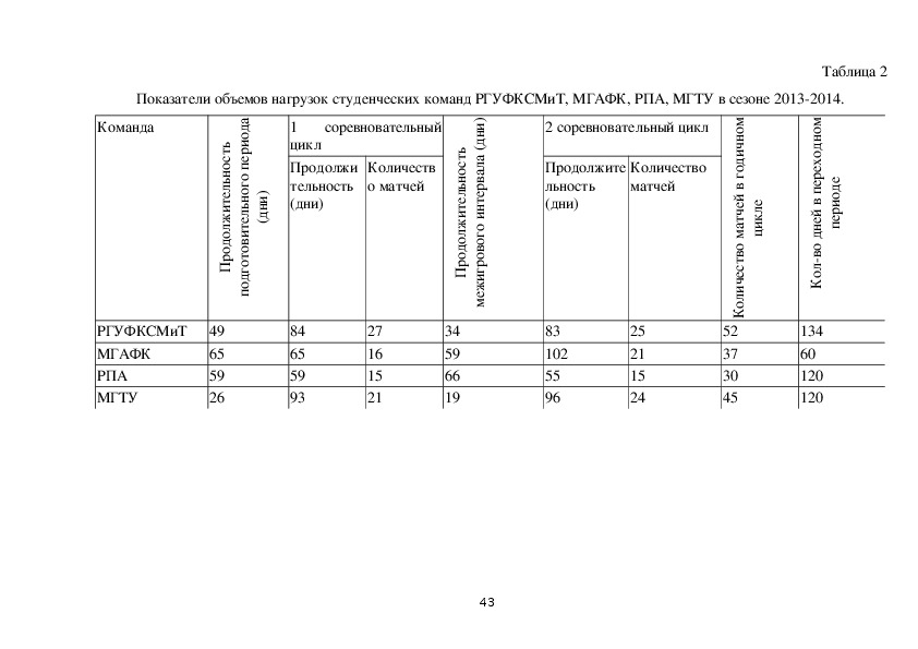 особенностей подготовки и подготовленности студенческих команд в годичном