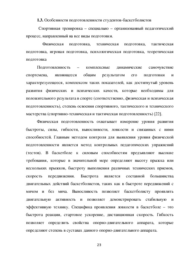 1.3. Особенности подготовленности студентовбаскетболистов………..……...22