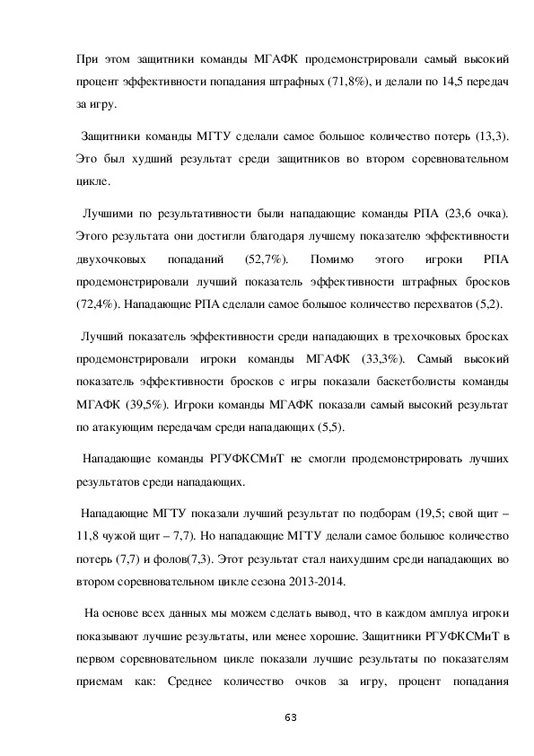 63двухочковых бросков, процент попадания суммарных попадания, а также
