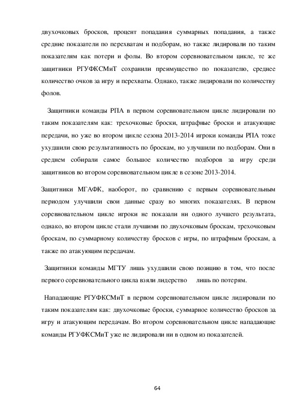 команды РГУФКСМиТ уже не лидировали ни в одном из показателей.