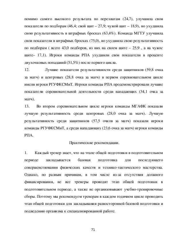 процент эффективности попадания штрафных (71,8%), и делали по 14,5 передач