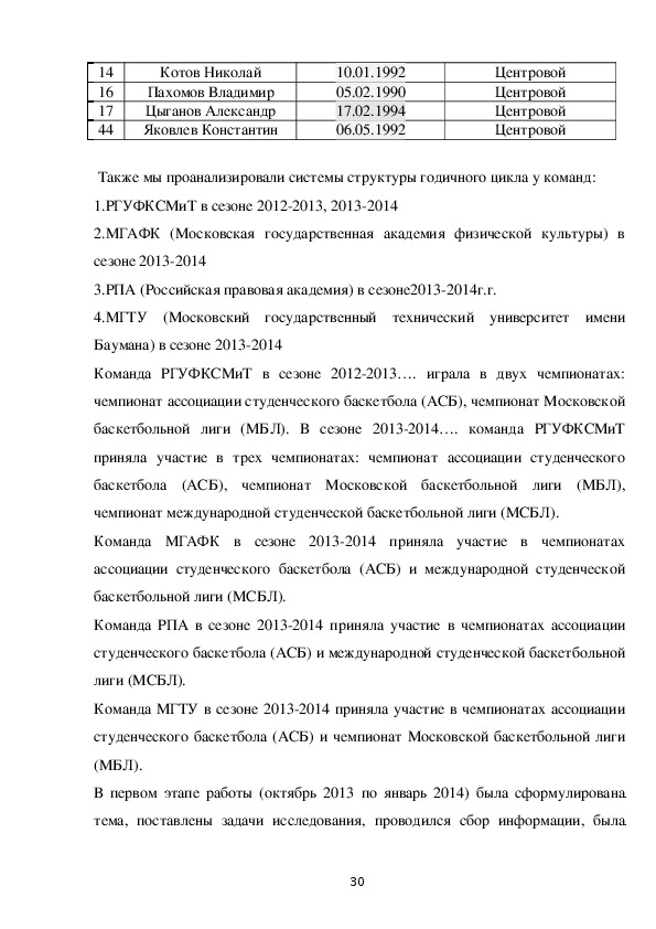 передачи, но уже во втором цикле сезона 20132014 игроки команды РПА тоже