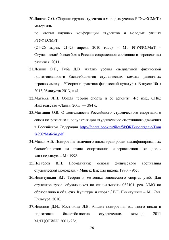 «Особенности подготовки и подготовленности студентовбаскетболистов в