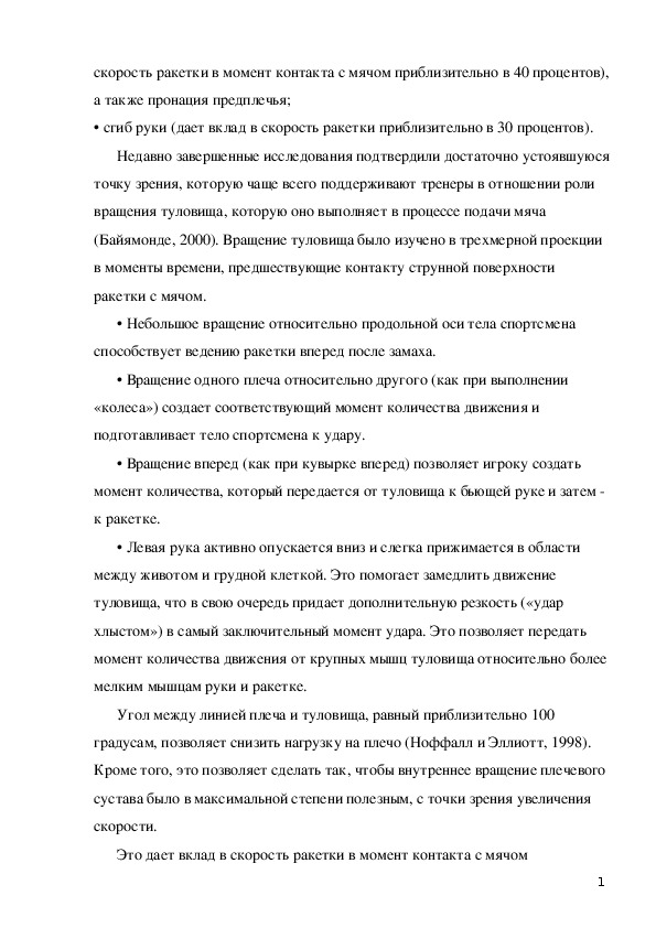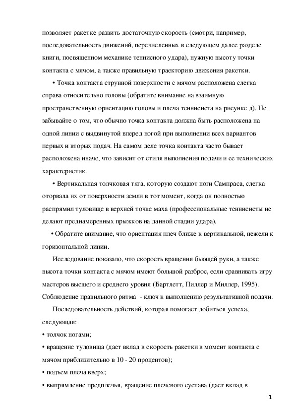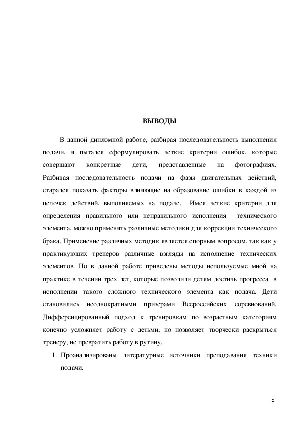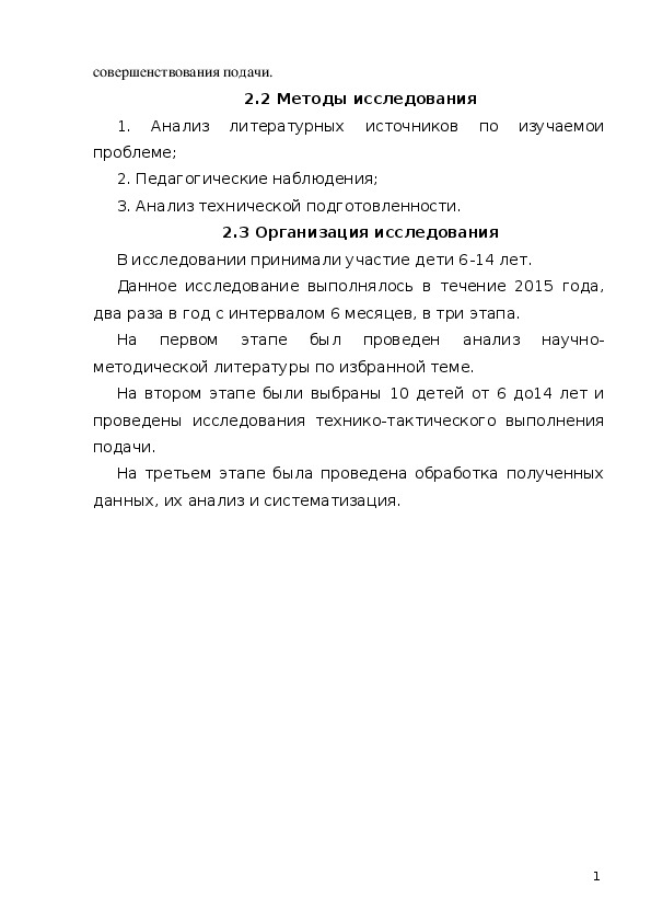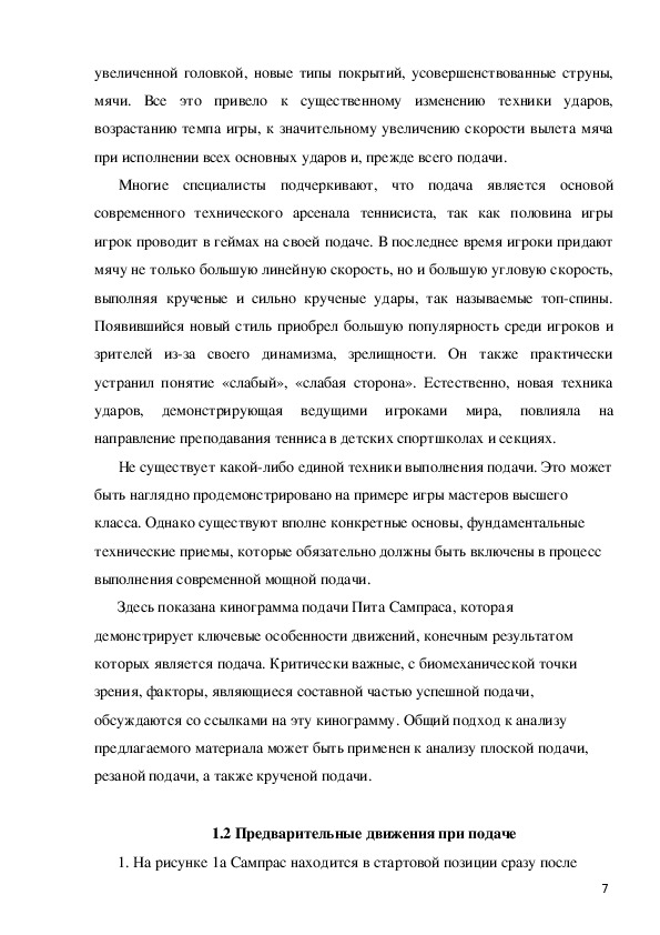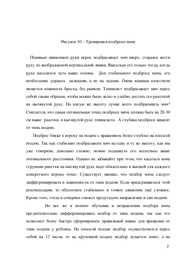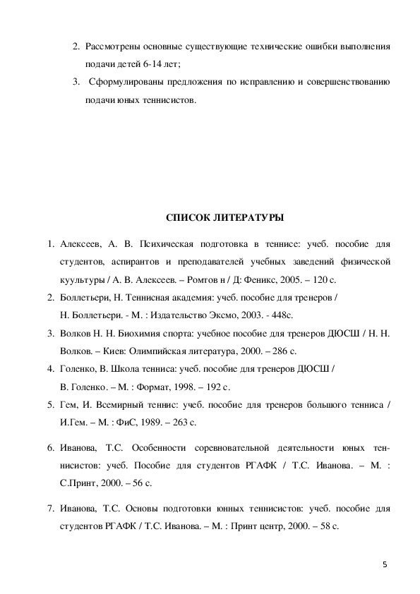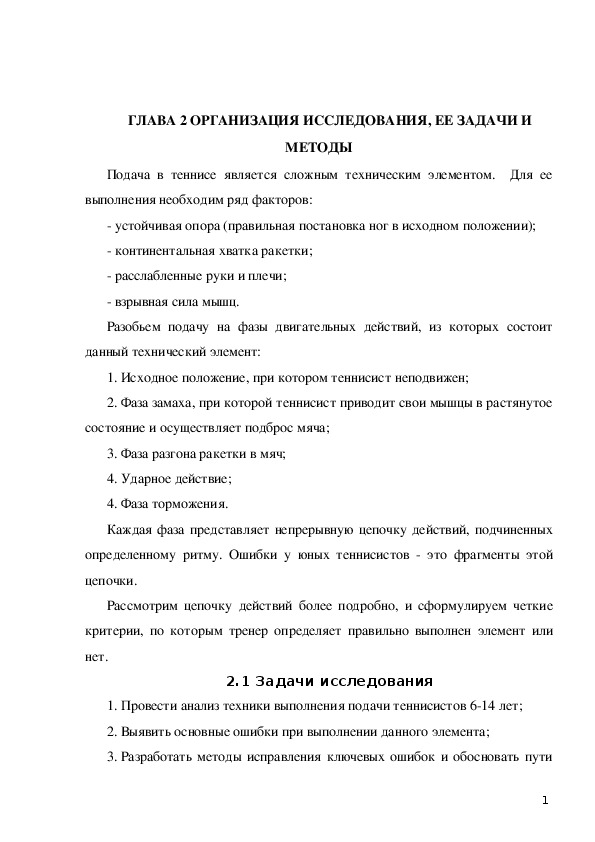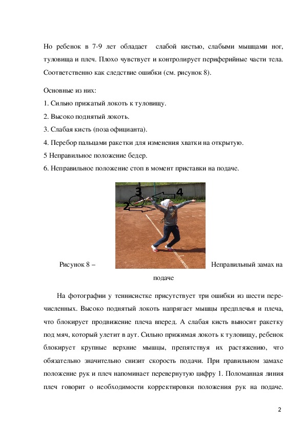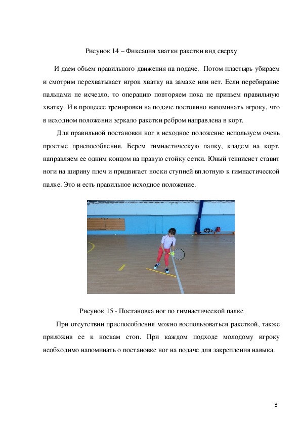 и методики выполнения подачи теннисистов 614 лет и разработать способы по