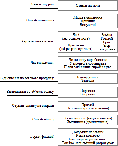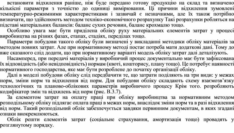Далі в моделі побудови обліку слід передбачити те, що затрати поділяють на три види: у межах норм, зміни норм та відхилення від норм. Для побудови обліку складають схему взаємозв’язку технологічних та планово-облікових параметрів виробничого процесу Крім того. розробляють кодифікатор змін та відхилень від норм (рис. В.3.7).