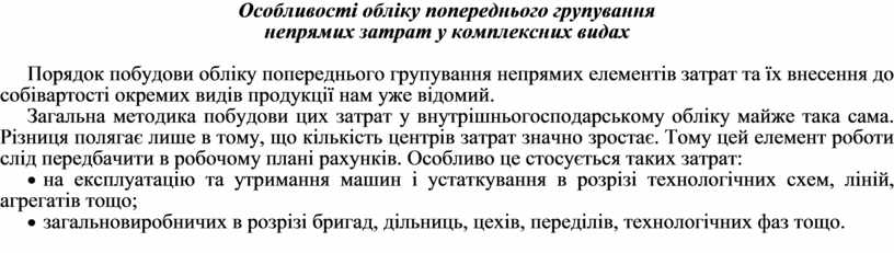 непрямих затрат у комплексних видах