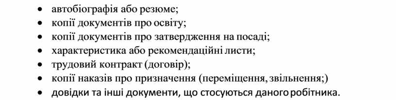 Особова справа (досьє) – це сукупність документів, які утриму- ють відомості про робітника.