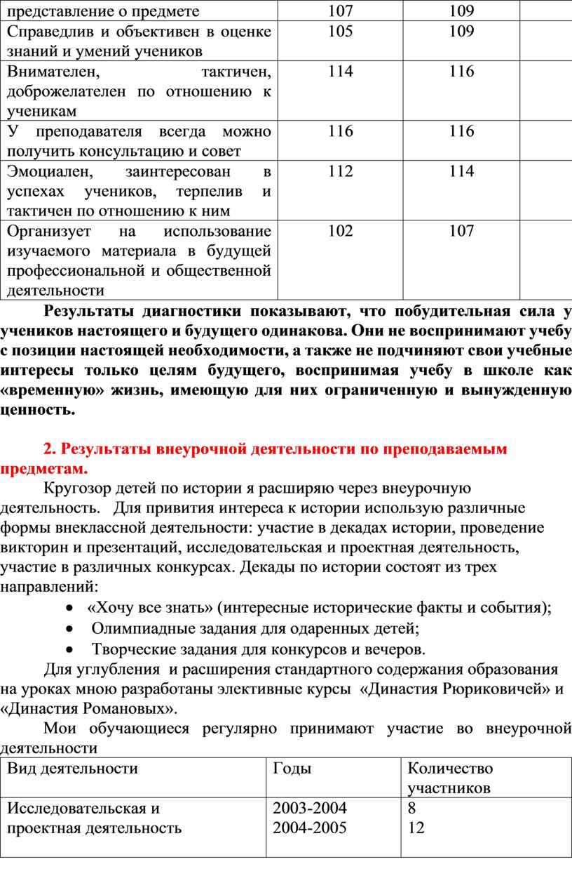 2. Результаты внеурочной деятельности по преподаваемым предметам.