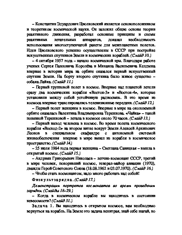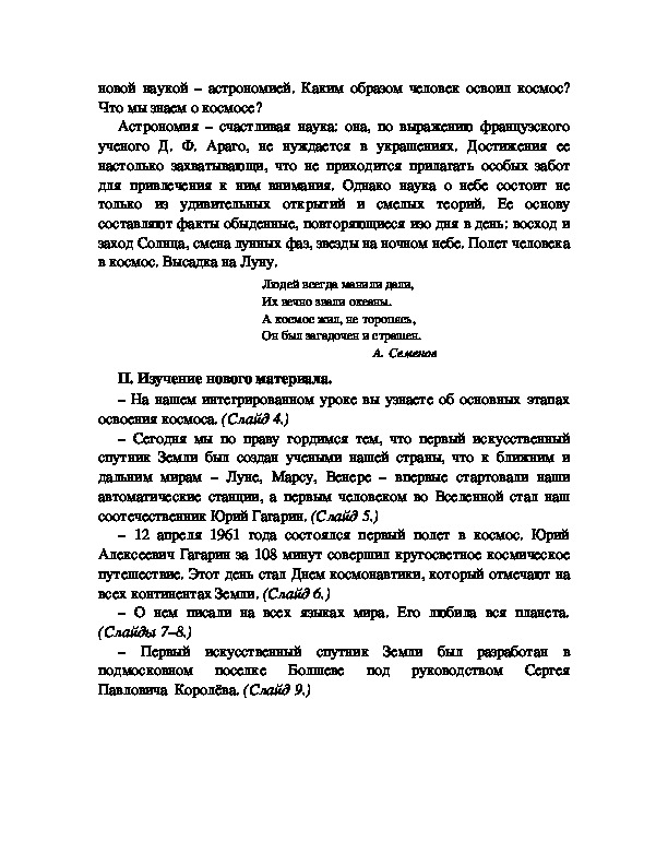 – Наш сегодняшний урок будет посвящен космонавтике. Мы