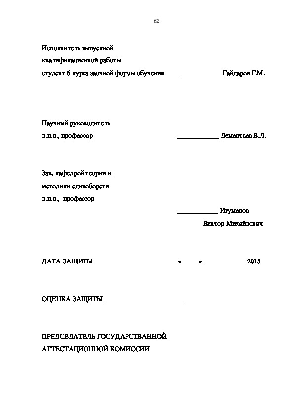 ДАТА ЗАЩИТЫ «_____»_____________2015